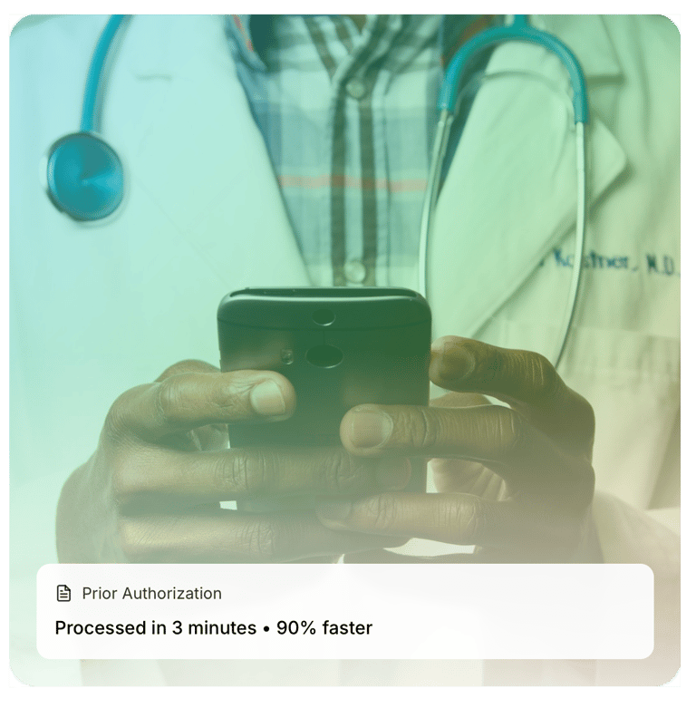 Processes complex prior authorization workflows in minutes, not hours. Handles forms, documentation, and follow-ups automatically.
